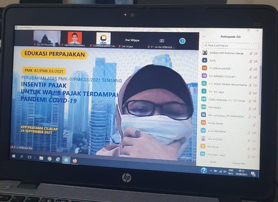 Kantor Pelayanan Pajak Pratama Cilacap menyelenggarakan sosialisasi PMK-82/PMK.03/2021 secara daring di Cilacap (Rabu, 29/9).