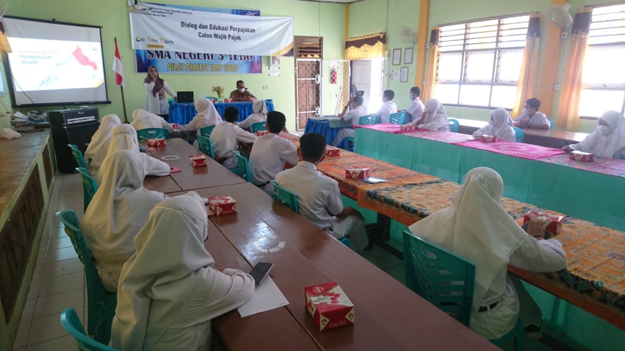 Kantor Pelayanan, Penyuluhan, dan Konsultasi Perpajakan (KP2KP) Muara Tebo mengadakan kegiatan Tax Goes To School (TGTS) di SMP Negeri 1 Tebo (Kamis, 27/5). Peserta yang hadir sebanyak 27 siswa.