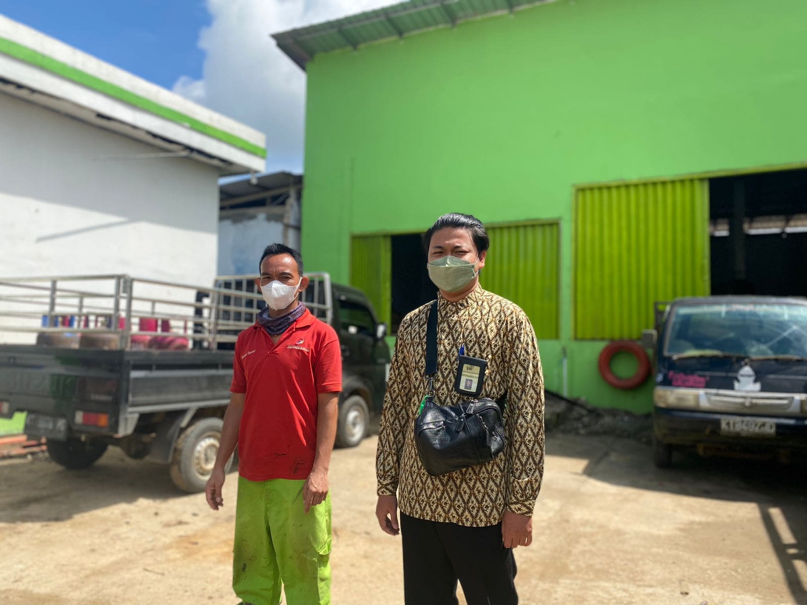 Kemudian setelah wawancara selesai, kami mengajak Bapak Hendra selaku Direktur PT Nabah Harapan Baru untuk berfoto di depan gudang penyimpanan gas elpiji serta beberapa truk pengangkutan yang kebetulan belum beroperasi.