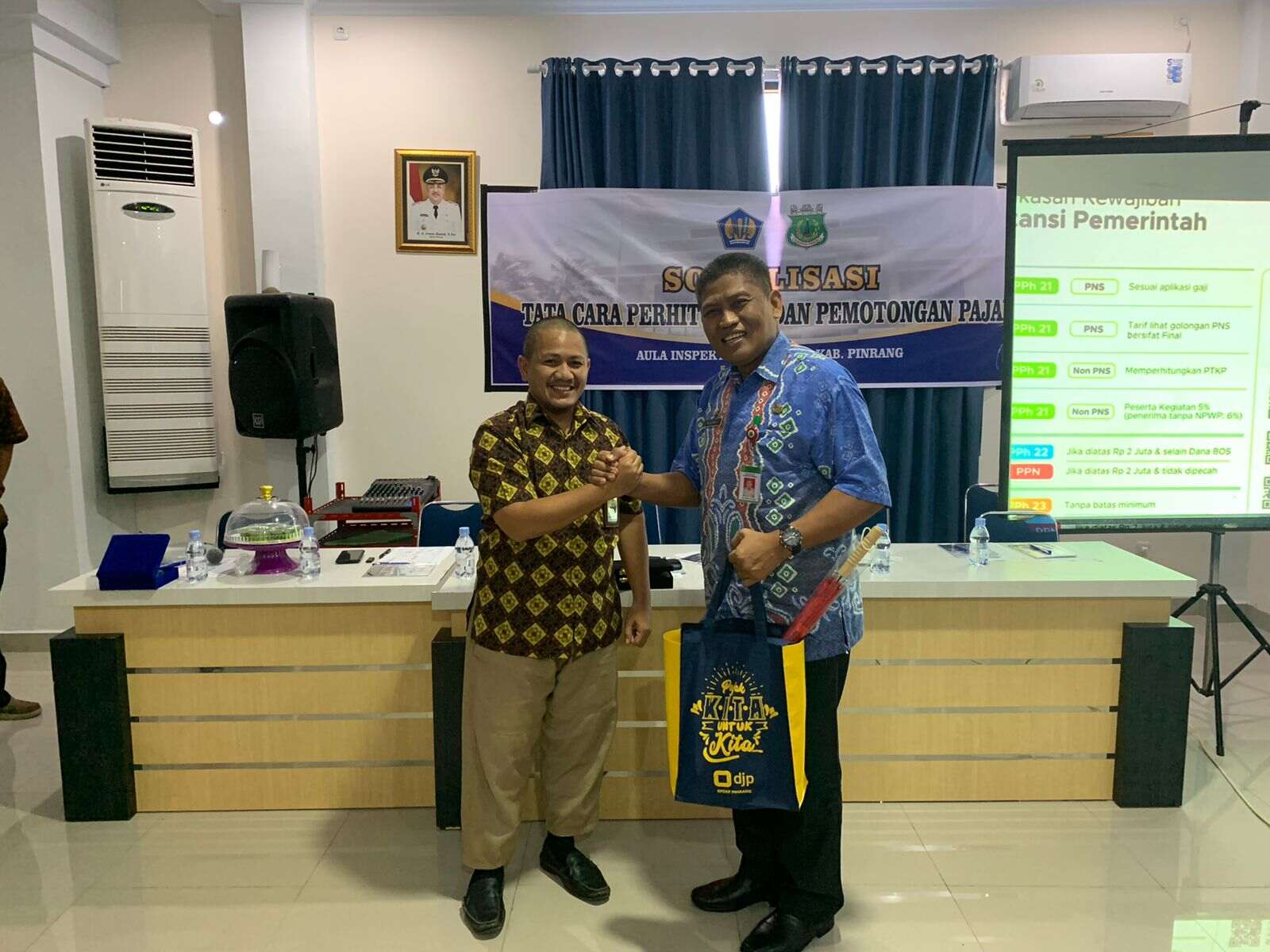 Kantor Pelayanan, Penyuluhan, dan Konsultasi Perpajakan (KP2KP) Pinrang bersama Kantor Pelayanan Pajak (KPP) Pratama Parepare menyelenggarakan sosiasliasi perpajakan kepada para ASN Inspektorat Daerah Pinrang, Kabuapaten Pinrang (Jumat, 5/8).