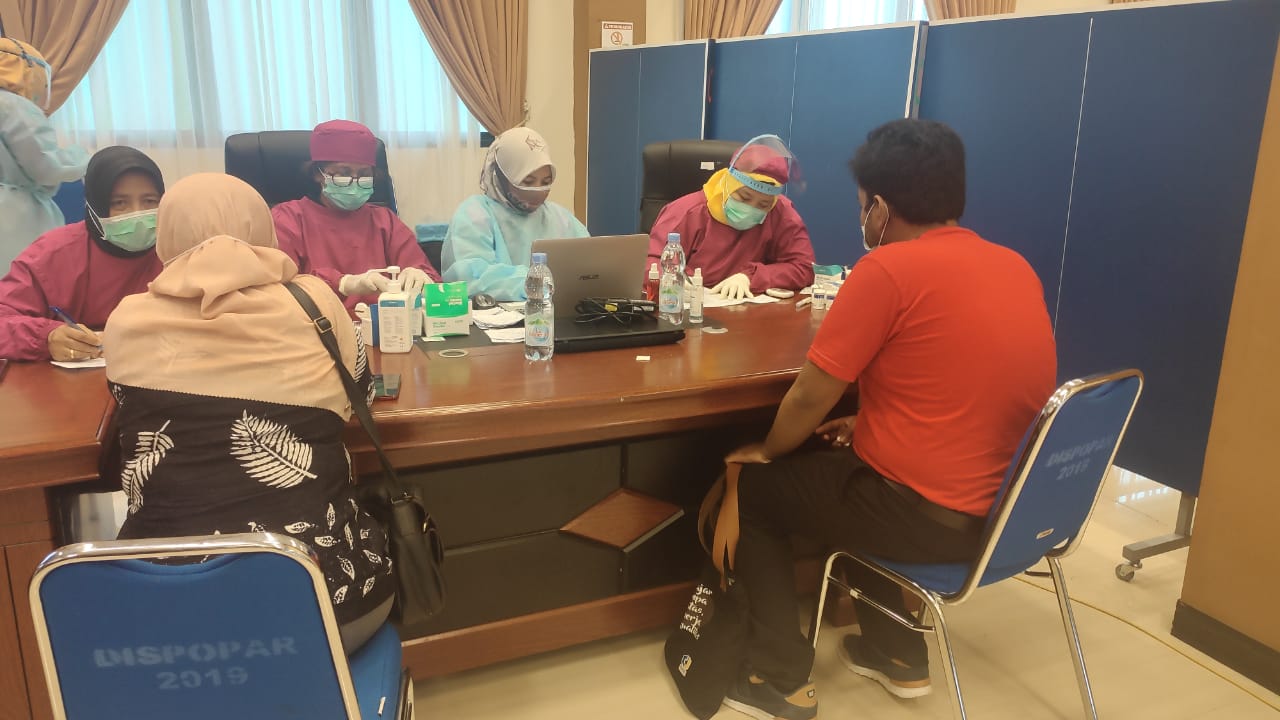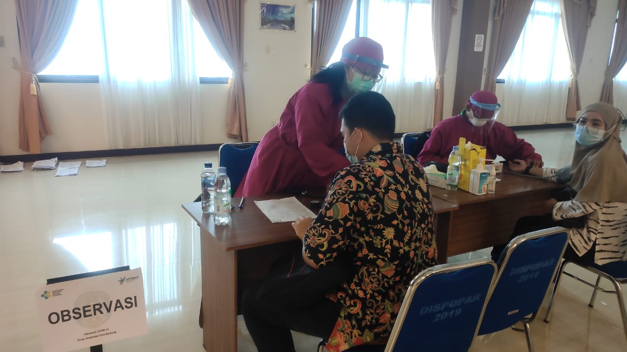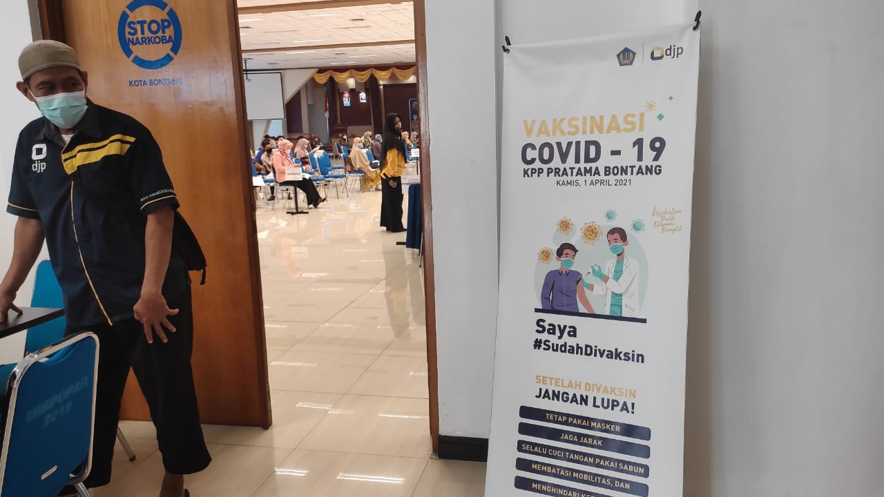 Kepala Kantor Pelayanan Pajak (KPP) Pratama Bontang Hanis Purwanto bersama seluruh pegawai mengikuti progam vaksinasi Covid-19 tahap pertama berlokasi di Aula Gedung Dinas Pemuda dan Olahraga (Dispora) Kota Bontang (Kamis, 1/4). Kegiatan vaksinasi ini juga diikuti jajaran dinas di Kota Bontang.