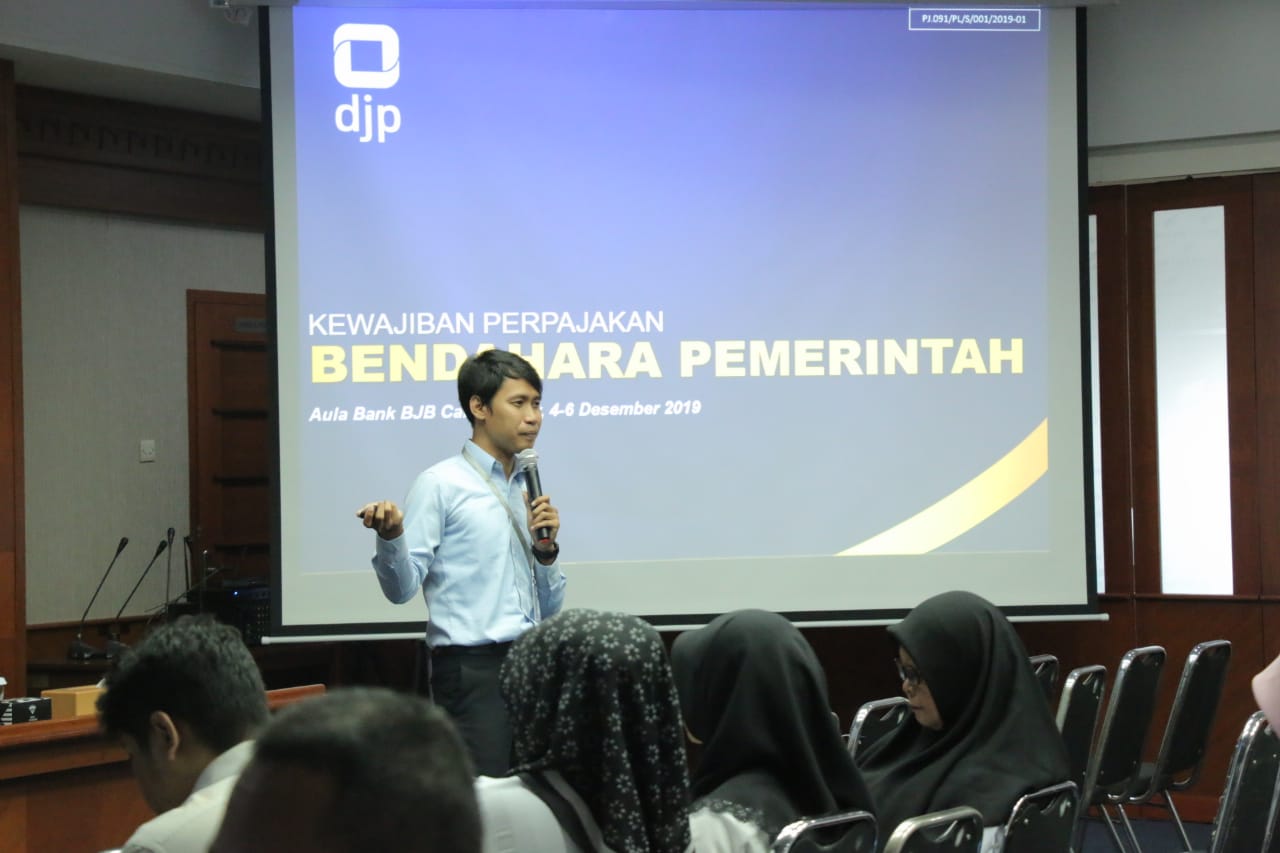 Sofri Abdul Rochim, Account Representative (AR) KPP Pratama Cianjur menyampaikan materi terkait kewajiban perpajakan bendahara pemerintah selaku pemotong/pemungut pajak. Sofri juga menyosialisasikan PMK-85/PMK.03/2019 tentang Mekanisme Pengawasan Terhadap Pemotongan/Pemungutan dan Penyetoran Pajak Atas Belanja yang Bersumber dari APBD. (EW)