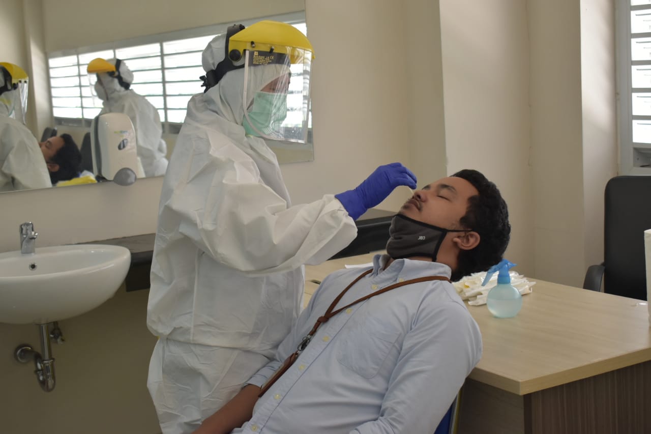 Seluruh tahapan PCR Swab Test berjalan sesuai protokol kesehatan kenormalan baru, mulai dari tahapan administrasi, wawancara dan observasi hingga pengambilan spesimen lendir. Pada tahap spesimen lendir sendiri dilakukan melalui dua saluran yaitu nasofaring (melalui hidung) dan orofaring (melalui tenggorokan). Tak jarang pegawai yang mengakui dirinya takut menjalani tes ini.