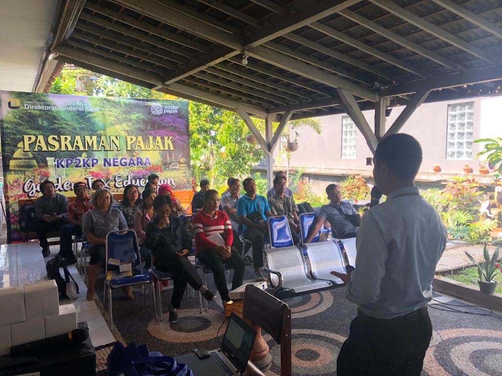 Kantor Pelayanan, Penyuluhan dan Konsultasi Perpajakan (KP2KP) Negara menggelar kegiatan edukasi perpajakan bagi wajib pajak badan bertempat di Taman Belakang KP2KP Negara (Rabu, 30/10). Kegiatan ini dihadiri oleh 17 wajib pajak badan CV di Kabupaten Jembrana.