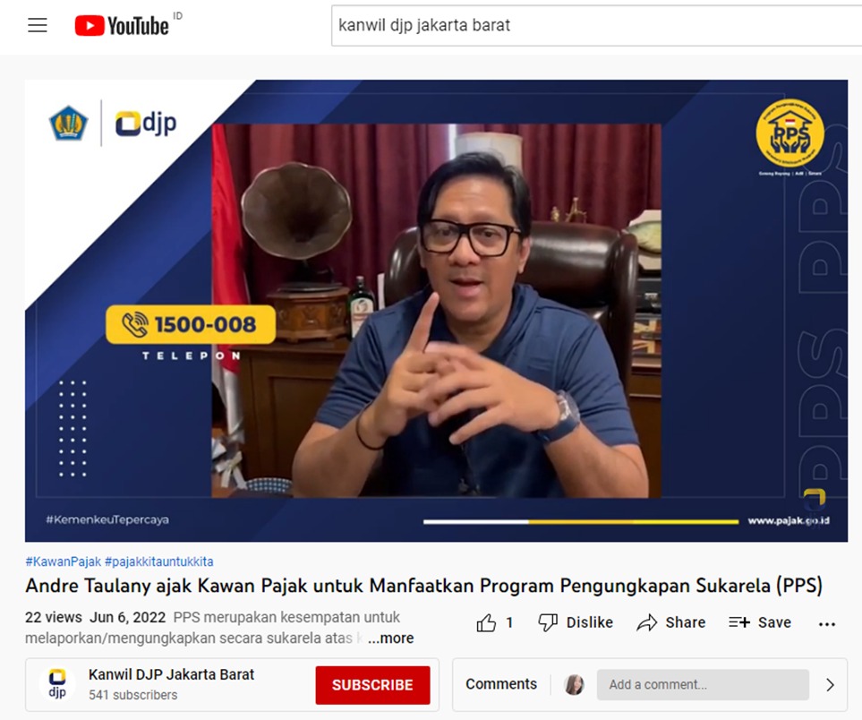 Video rekaman ajakan Andre ini dapat disaksikan di Youtube channel Kantor Wilayah Direktorat Jenderal Pajak (Kanwil DJP) Jakarta Barat atau di akun Instagram @pajakjakbar.