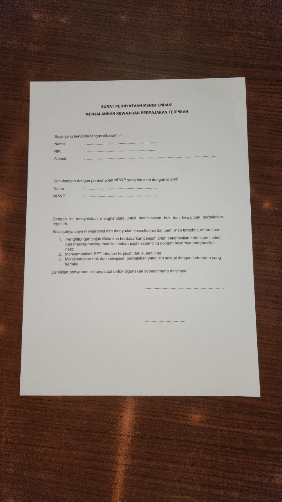 Namun, sebelum melakukan pendaftaran NPWP istri, petugas membantu Darmawan untuk melakukan pelaporan Surat Pemberitahuan (SPT) Tahunan Pajak Penghasilan (PPh) Orang Pribadi (OP). Ternyata Darmawan belum melaporkan SPT Tahun PPh tahun 2021. Setelah itu, barulah petugas membantu Darmawan untuk melakukan pendaftaran NPWP untuk istrinya.