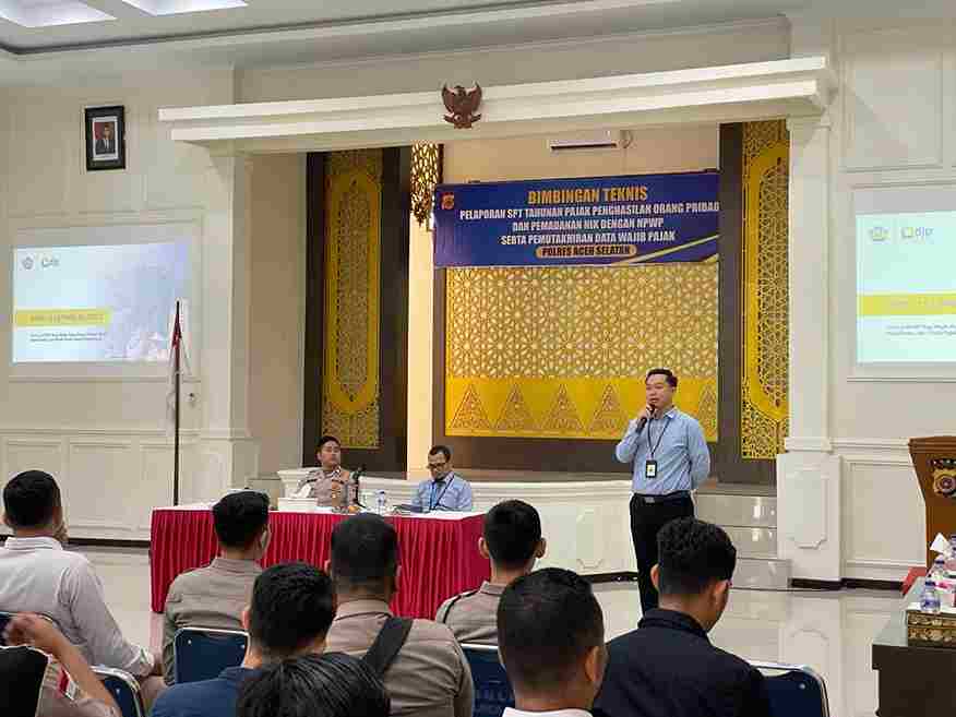 Kantor Pelayanan Pajak (KPP) Pratama Tapaktuan terus memberikan sosialisasi kepada wajib pajak. Kali ini, Pajak Tapaktuan bersama Kepolisian Resor (Polres) Aceh Selatan mengadakan Bimbingan Teknis (Bimtek) Pelaporan SPT Tahunan PPh Orang Pribadi, Pemadanan Nomor Induk Kependudukan (NIK) sebagai Nomor Pokok Wajib Pajak (NPWP), dan Pemutakhiran Data Mandiri Wajib Pajak. Kegiatan ini dilakukan di Aula Bhara Daksa Polres Aceh Selatan (Rabu, 15/3) .
