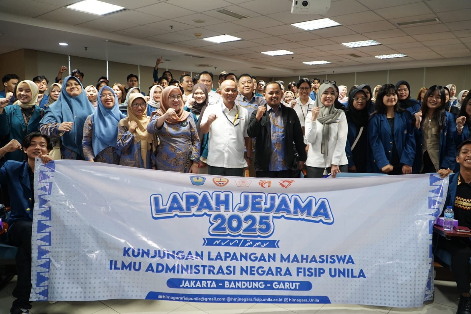 Sebanyak 86 Mahasiswa Program Studi Ilmu Administrasi Negara Fakultas Ilmu Sosial dan Ilmu Politik (FISIP) Universitas Lampung (UNILA) melakukan kunjungan lapangan ke Kantor Pusat Direktorat Jenderal Pajak (DJP) di Jakarta Selatan (Senin, 26/5). Kegiatan ini merupakan bagian dari rangkaian program Lapah Jujama 2025, ajang studi lapangan dan anjangsana yang rutin dilakukan oleh jurusan dalam rangka menambah wawasan mahasiswa secara langsung ke instansi pemerintahan.