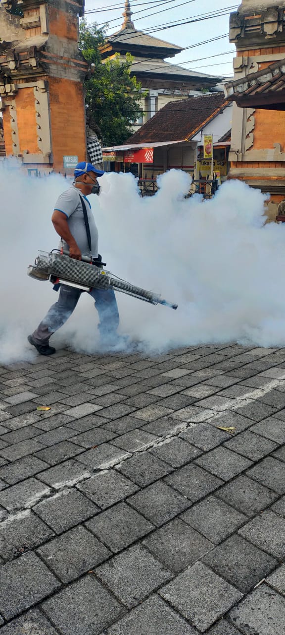 Kantor Pelayanan Pajak (KPP) Pratama Badung Utara melaksanakan kegiatan pengasapan (fogging) secara rutin sebagai langkah antisipasi penyebaran penyakit DBD (Demam Berdarah Dengue) selain pandemi Covid-19 di area kantor KPP Pratama Badung Utara (Sabtu, 17/10).