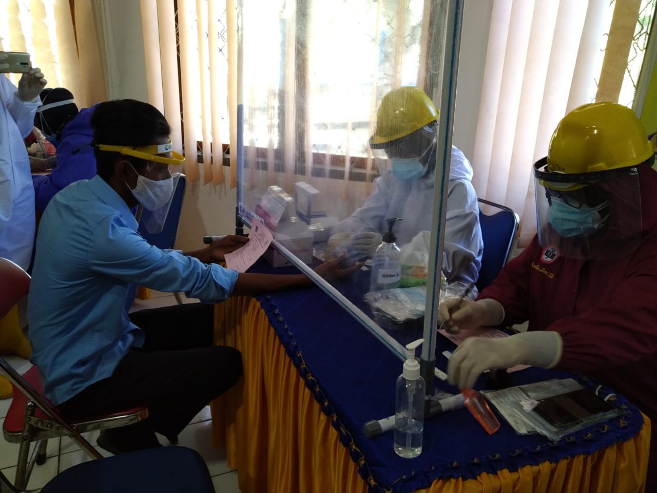 Kantor Pelayanan, Penyuluhan, dan Konsultasi Perpajakan (KP2KP) Raha melaksanakan kegiatan pemeriksaan rutin rapid test Covid-19 di ruang tempat pelayanan terpadu KP2KP Raha di Kabupaten Muna (Rabu 26/8). Kegiatan ini terlaksana berkat kerja sama antara KP2KP Raha dengan petugas kesehatan dari Puskesmas Sugilaende.