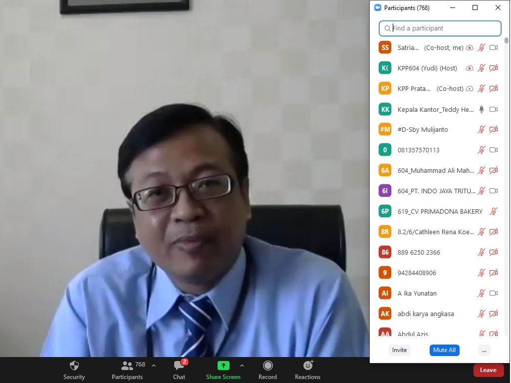 Di akhir sambutan disampaikan harapan agar kegiatan sosialisasi ini dapat memberikan pemahaman kepada wajib pajak baik secara konseptual maupun praktikal sehingga dapat meminimalisir kesalahan dalam pemenuhan hak dan kewajiban perpajakan, dan tidak lupa imbauan untuk memanfaatkan berbagai saluran daring yang tersedia untuk berkonsultasi selama masa pandemi Covid-19.