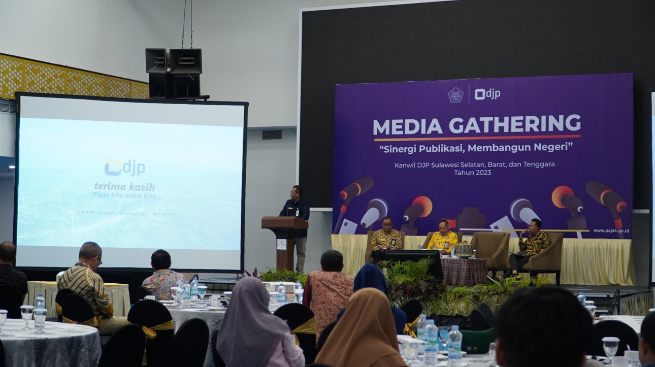 Kantor Wilayah Direktorat Jenderal Pajak Sulawesi Selatan, Barat, dan Tenggara (Kanwil DJP Sulselbartra) menyelenggarakan kegiatan riung media (media gathering) tahun 2023 dengan tema “Sinergi Publikasi, Membangun Negeri” di Mahoni Hall Hotel Claro, Jalan A. P. Pettarani Nomor 3, Kelurahan Mannuruki, Kecamatan Tamalate, Kota Makassar, Sulawesi Selatan (Selasa, 10/10).