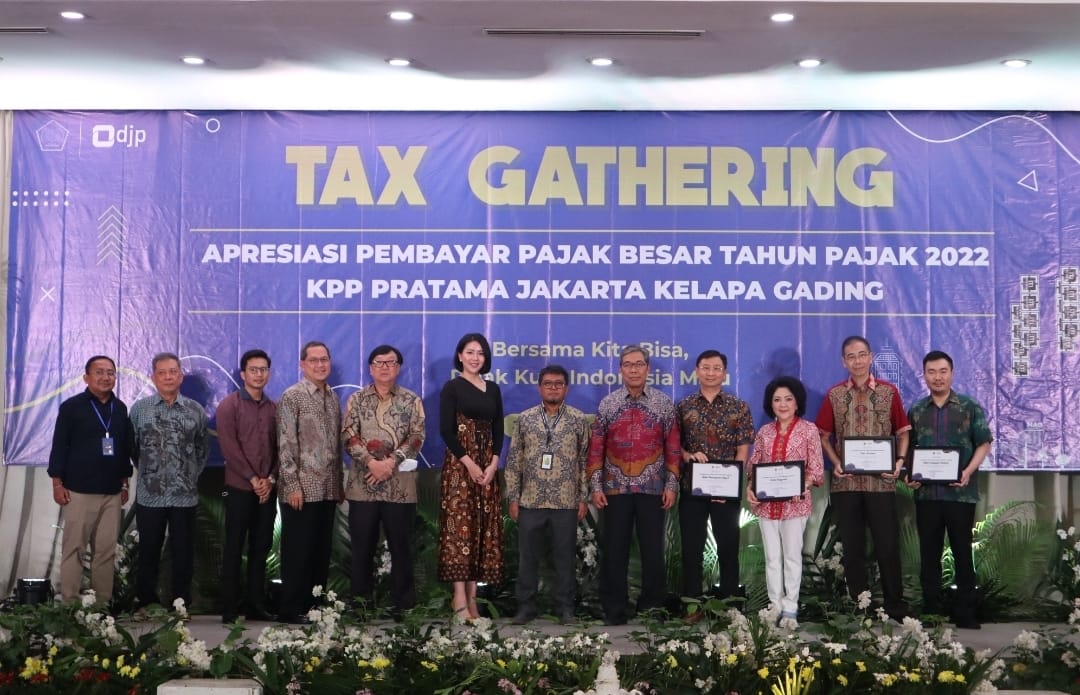 Kantor Pelayanan Pajak (KPP) Pratama Jakarta Kelapa Gading menggelar acara riung pajak (tax gathering) 2023 di Ballroom Klub Kelapa Gading (Selasa, 21/2). Acara bertujuan untuk memberikan apresiasi dan penghargaan kepada wajib pajak pembayar terbesar dan berkontribusi signifikan terhadap KPP Pratama Jakarta Kelapa Gading. Kegiatan dihadiri 52 wajib pajak serta dua Kawan Pajak Panutan yaitu Brandon Salim dan Agnes Jennifer.