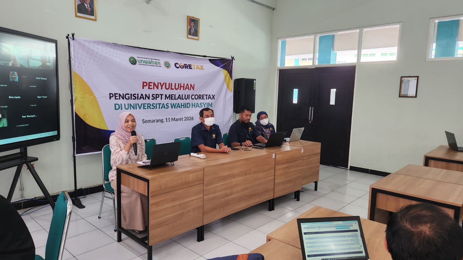 Tim Kantor Pelayanan Pajak (KPP) Madya Dua Semarang mendatangi Universitas Wahid Hasyim (Unwahas), Semarang, (Rabu, 11/3), untuk memberikan asistensi pengisian Surat Pemberitahuan (SPT) Tahunan bagi para dosen dan karyawan. Kegiatan ini merupakan bagian dari program pendampingan Wajib Pajak yang dikoordinasikan bersama Kantor Wilayah Direktorat Jenderal Pajak (DJP) Jawa Tengah I, guna memastikan seluruh civitas akademika Unwahas memenuhi kewajiban pelaporan pajak penghasilan orang pribadi tepat waktu.