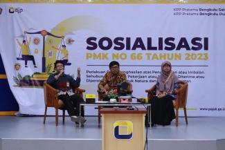 Lebih lanjut, Rio menyampaikan materi perpajakan tentang PMK 66 Tahun 2023 yang telah dirilis pada awal bulan Juli lalu. Pemaparan materi dipandu oleh moderator, Wasi Seto Wasisto dari KPP Pratama Bengkulu Satu. Setelah pemaparan materi dari narasumber, sesi tanya jawab dibuka oleh moderator.. Terdapat 8 peserta yang bertanya secara langsung dan 3 peserta yang bertanya melalui daring.