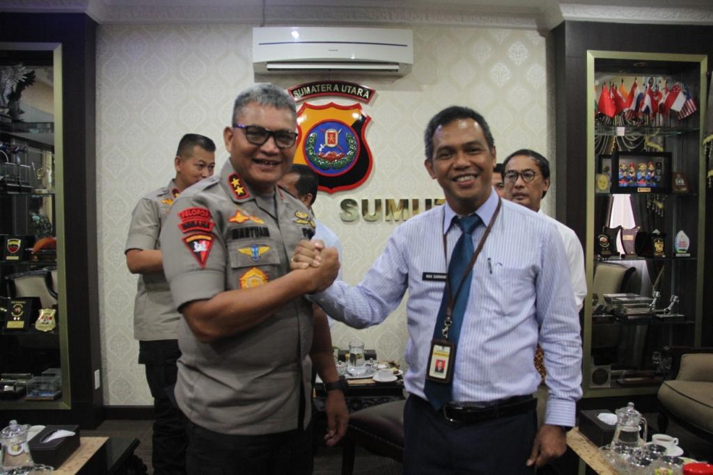 Plt. Kepala Kantor Wilayah (Kakanwil) Direktorat Jenderal Pajak (DJP) Sumut I Max Darmawan melakukan audiensi ke Markas Kepolisian Daerah Sumatera Utara (Mapolda Sumut). Max bertemu langsung dengan Kepala Kepolisian Daerah Sumatera Utara (Kapolda Sumut) Irjen Pol. Drs. Martuani Sormin, M.Si. didampingi oleh Wakil Kepala Kepolisian Daerah Sumatera Utara (Wakapolda Sumut) Brigjen Pol. Mardiaz Kusin Dwihananto, S.I.K, M.Hum. di Ruang Perjamuan Lt. II Mapolda Sumut. (Kamis, 13/2)
