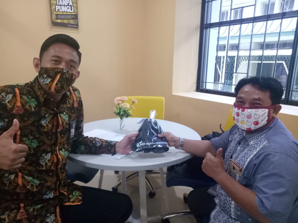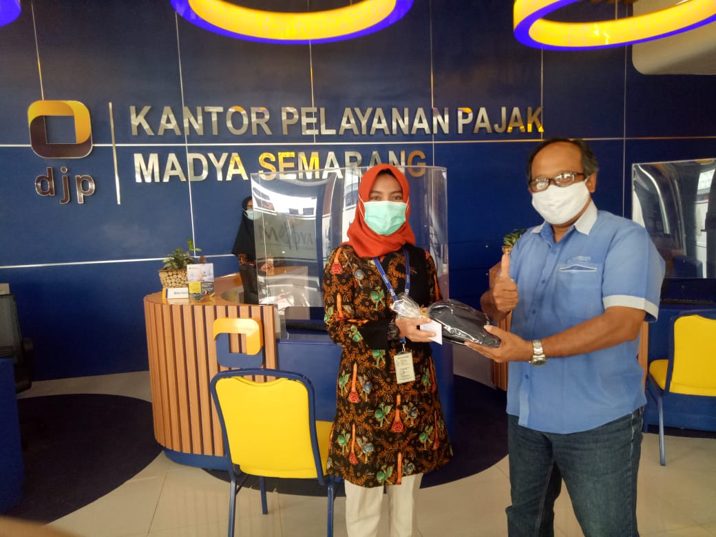 Kantor Pelayanan Pajak (KPP) Madya Semarang menyambut awal tahun dengan memberikan cendera mata mata kepada wajib pajak yang datang berkunjung pada minggu pertama di tahun 2021 (Selasa, 5/1).