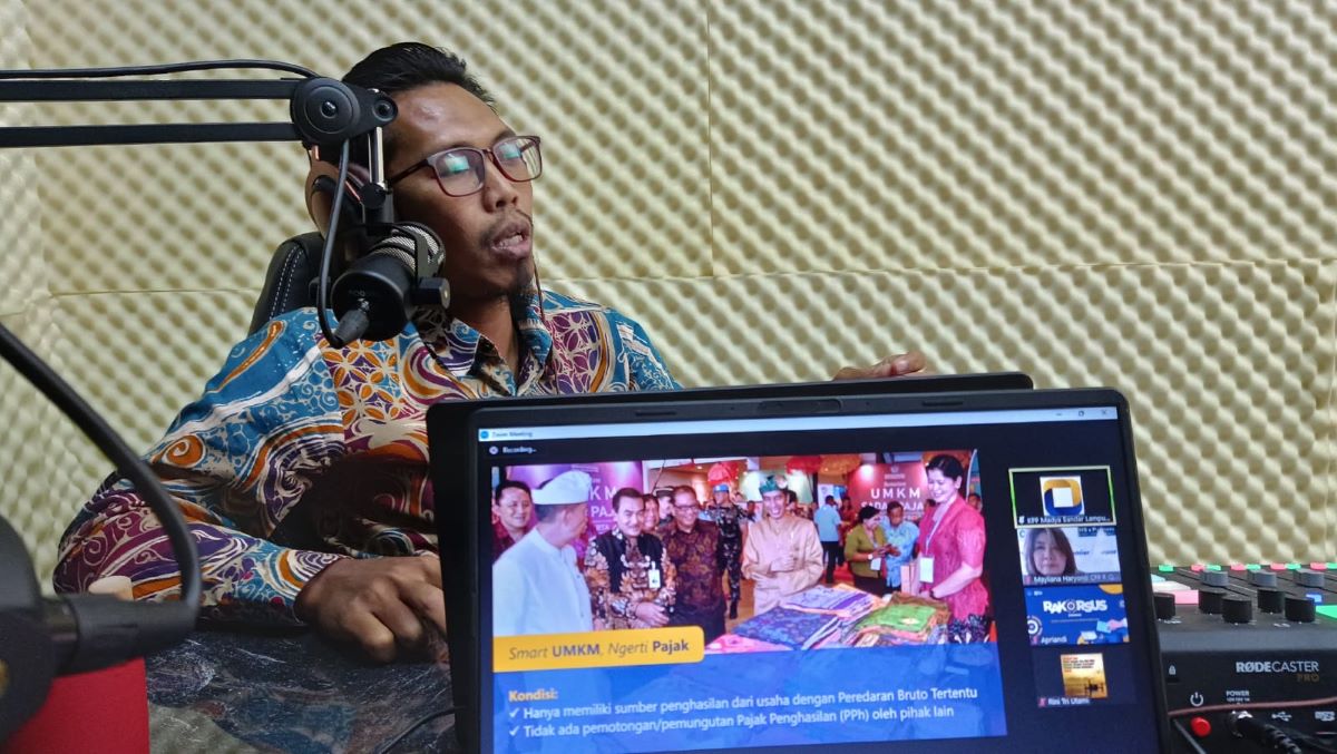 Kantor Pelayanan Pajak (KPP) Madya Bandar Lampung menyelenggarakan kelas pajak mengenai pelaporan Surat Pemberitahuan (SPT) Tahunan Pajak Penghasilan (PPh) untuk Wajib Pajak Orang Pribadi UMKM di Ruang Studio KPP Madya Bandar Lampung, Kota Bandar Lampung melalui aplikasi cloud Zoom Meeting (Jumat, 3/2).