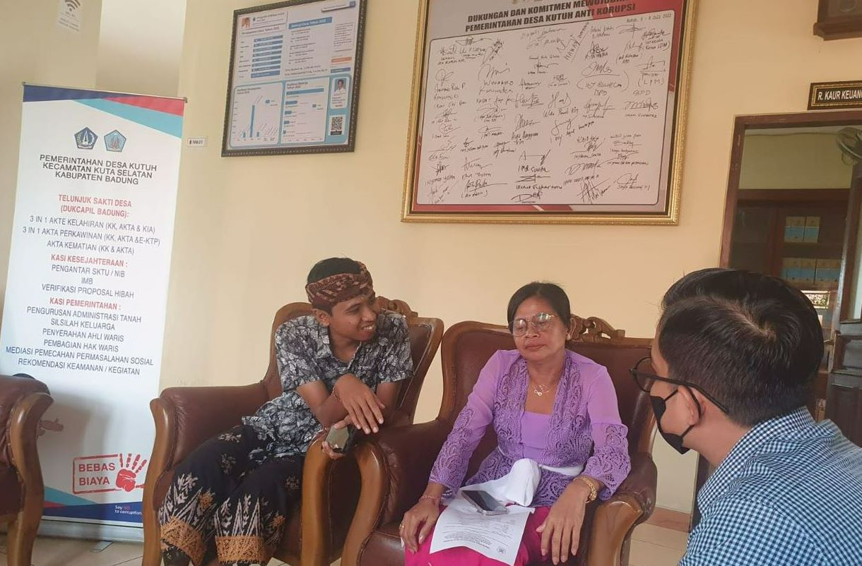 Tim Kantor Pelayanan Pajak (KPP) Pratama Badung Selatan yaitu Kepala Seksi Pengawasan V Endah Ambar Arum didampingi Account Representative Seksi Pengawasan V Ardi Setya Pradana dan Putri Risqia melakukan kunjungan ke Desa Kutuh, Badung Selatan (Jumat, 7/7).