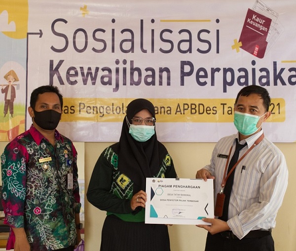 Para Bendahara Desa Kecamatan Tatah Makmur menghadiri acara Sosialisasi Kewajiban Perpajakan yang diadakan oleh Kantor Pelayanan, Penyuluhan, dan Konsultasi Perpajakan (KP2KP) Martapura. Acara tersebut digelar di Aula Kantor Kecamatan Tatah Makmur, Kabupaten Banjar, Kalimantan Selatan dengan tetap memperhatikan protokol kesehatan (Kamis, 4/11).