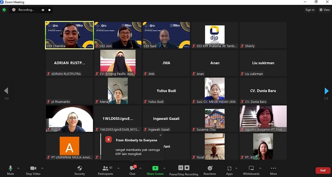 Kantor Pelayanan Pajak (KPP) Pratama Jakarta Tambora mengadakan kelas pajak dengan tema "Mengenal e-PBK Versi 2" melalui Zoom Meeting bertempat di KPP Pratama Jakarta Tambora, Tambora, Jakarta Barat (Rabu, 29/11).