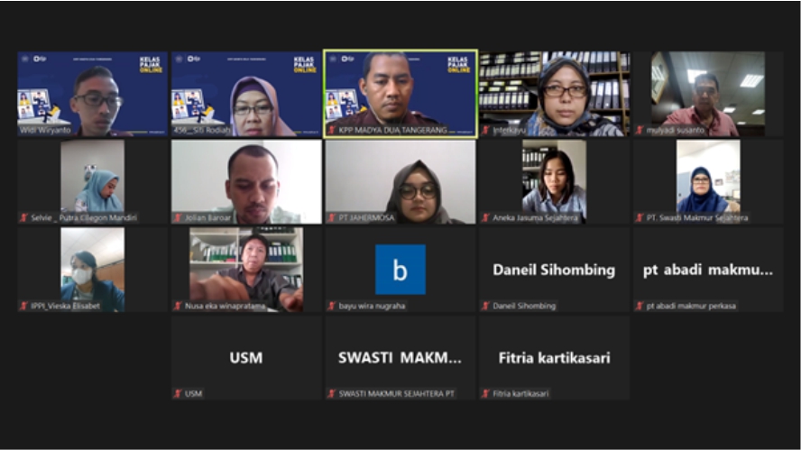 Kantor Pelayanan Pajak (KPP) Madya Dua Tangerang kembali mengadakan kelas pajak secara daring dengan tema pemadanan Nomor Induk Kependudukan (NIK) menjadi Nomor Pokok Wajib Pajak (NPWP) langsung dari KPP Madya Dua Tangerang, Kabupaten Tangerang (Kamis, 9/3).