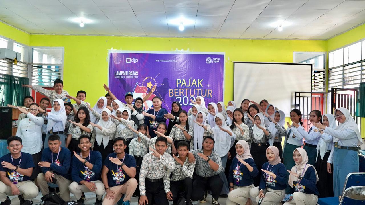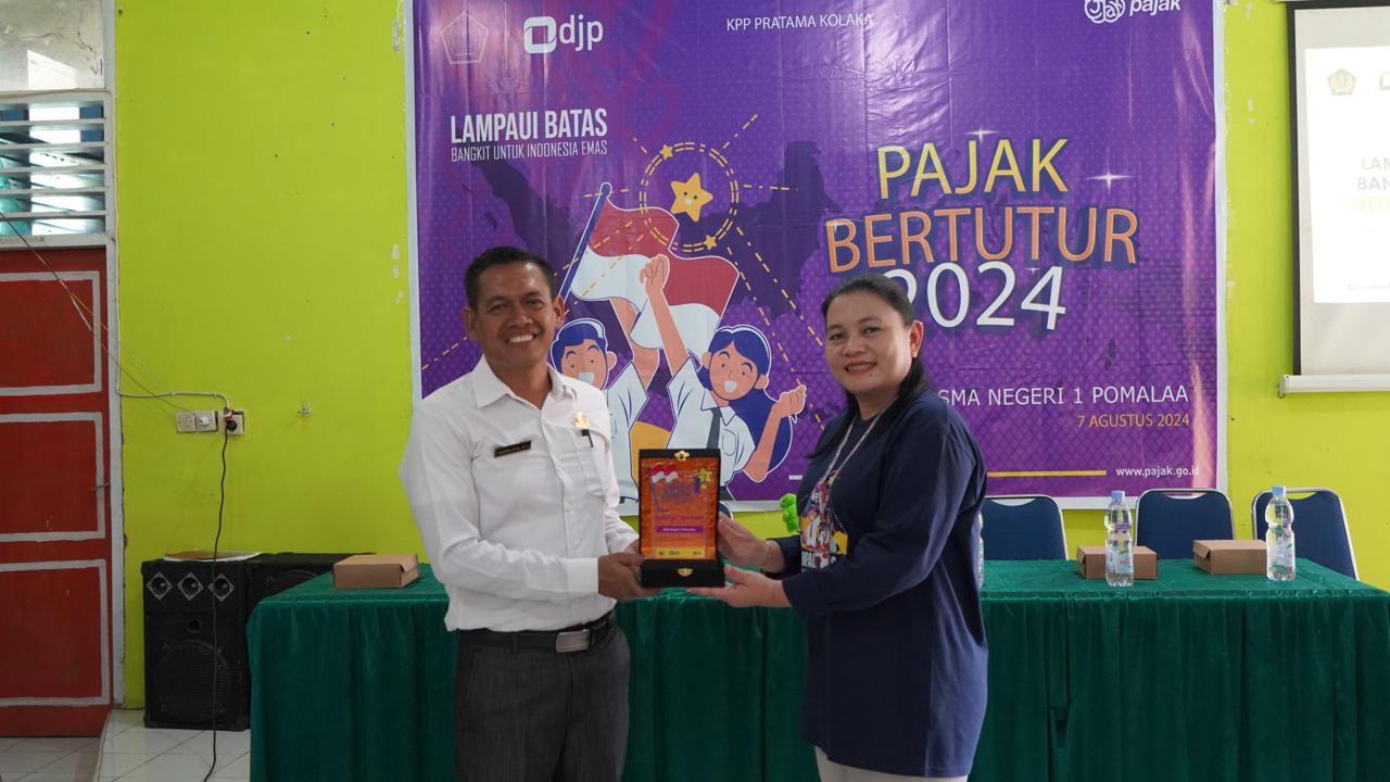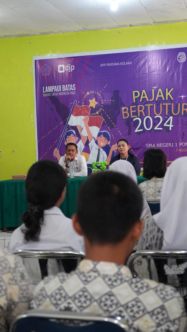 Kantor Pelayanan Pajak (KPP) Pratama Kolaka melaksanakan kegiatan Pajak Bertutur di Sekolah Menengah Atas (SMA) Negeri 1 Pomala dengan tema “Lampaui Batas, Bangkit Untuk Indonesia Emas” (7/8). Acara ini bertujuan untuk meningkatkan kesadaran dan pemahaman siswa tentang pentingnya pajak bagi pembangunan negara serta mendorong partisipasi mereka dalam sistem perpajakan.