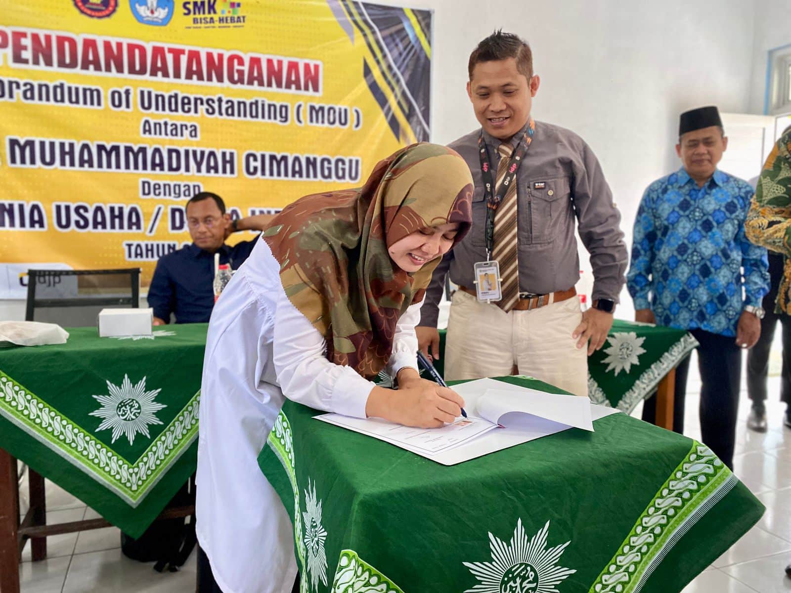 Seremonial penandatangan dan paraf dilakukan oleh Arwan Atrofu Zaman selaku kepala KP2KP Majenang dan Darsito selaku Ketua Majelis Pendidikan Dasar dan Menengah (Dikdasmen) PCM Cimanggu. Kerja sama ini dimaksud kan untuk memberi kesempatan bagi siswa dan siswi SMK Muhammadiyah Cimanggu untuk dapat belajar dan mengenal mekanisme perpajakan lebih lanjut.