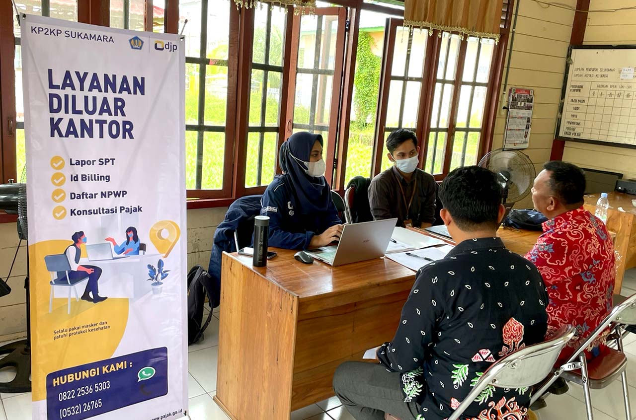 Kantor Pelayanan, Penyuluhan, dan Konsultasi Perpajakan (KP2KP) Sukamara mengadakan Layanan Di Luar Kantor (LDK) yang bertempat di Kantor Kelurahan Kuala Jelai, Kabupaten Sukamara (Kamis, 19/1). Layanan ini dibuka mulai pukul 10.00 WIB dan berakhir pada pukul 13.00 WIB. KP2KP Sukamara mengirimkan tiga orang pegawai sebagai petugas konsultasi serta penerimaan SPT Tahunan.