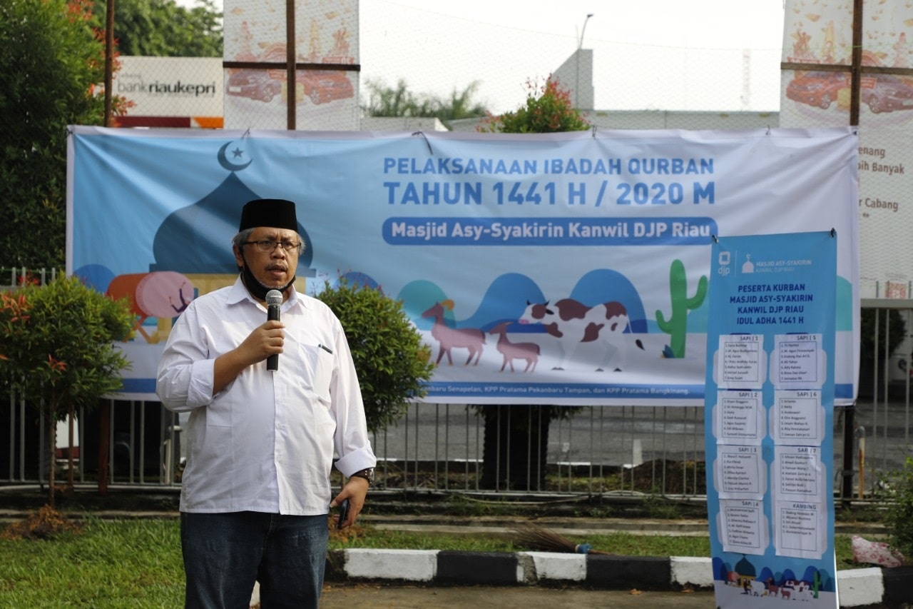 Kepala Kantor Wilayah DJP Riau Farid Bachtiar menyampaikan bahwa dalam melaksanakan kurban di tengah pandemi seperti ini untuk tetap menjaga protokol kesehatan yang telah dianjurkan oleh pemerintah. Hal ini dimaksudkan karena masih cukup banyak kasus baru yang ditemukan di Indonesia. Kegiatan kurban tahun ini diharapkan bisa membantu masyarakat yang saat ini terkena dampak dari adanya pandemi Covid-19.