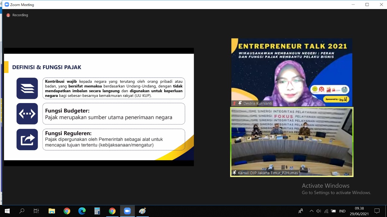 Universitas Negeri Jakarta (UNJ) bekerja sama dengan Kantor Wilayah DJP Jakarta Timur menyelenggarakan kegiatan Entrepreneur Talk (Entalk) 2021 dengan tema “Wirausahawan Membangun Negeri: Peran dan Fungsi Pajak Membantu Pelaku Bisnis” secara daring di Jakarta Timur (Selasa, 29/06).