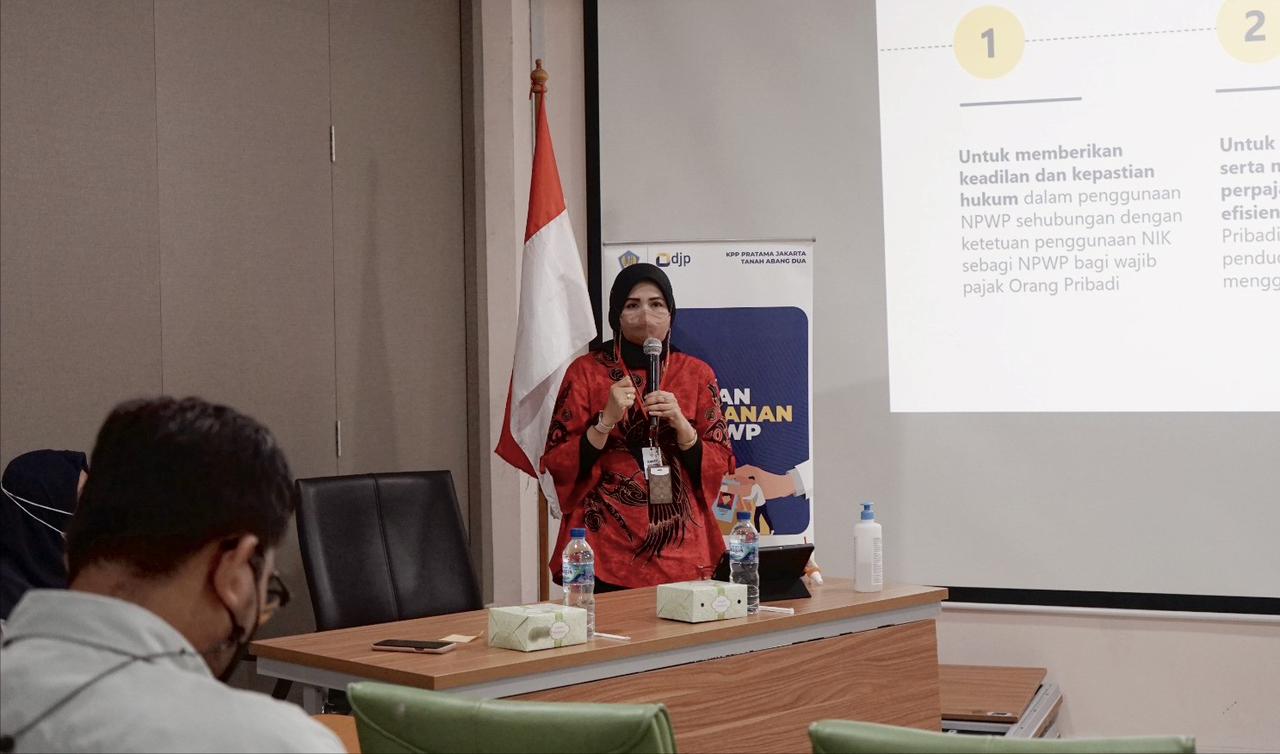 Kepala KPP Pratama Jakarta Tanah Abang Dua Siscka Mirela Juniati, turut hadir dalam acara tersebut. Siscka menyampaikan beberapa poin penting terkait alasan yang mendasari diselenggarakannya kegiatan tersebut mulai dari tujuan kebijakan diterapkannya NIK sebagai NPWP, batas waktu pelaporan SPT Tahunan Orang Pribadi dan pembahasan terkait antikorupsi yang bertujuan untuk mengajak tenaga kesehatan dan non tenaga kesehatan yang bertugas di RSUD Tanah Abang agar tidak memberikan gratifikasi kepada pegawai KPP Pratama Jakarta Tanah Abang Dua.