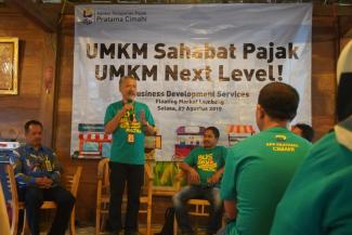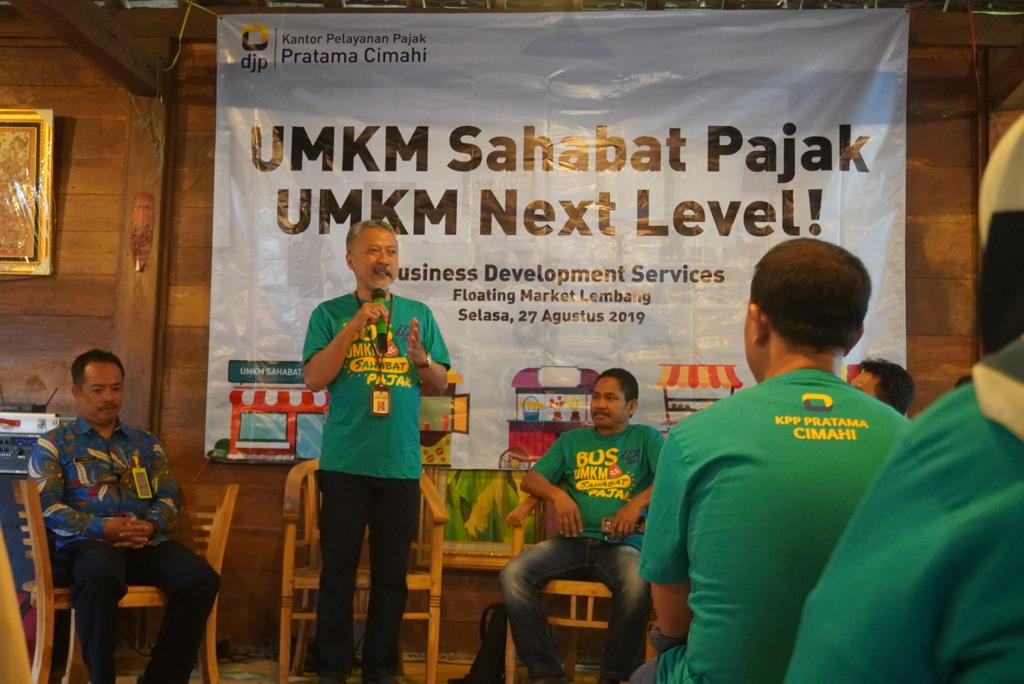 UMKM Sahabat Pajak, UMKM Next Level! adalah tema yang dipilih KPP Pratama Cimahi dalam kegiatan Business Development Service (BDS) di Floating Market Lembang, Bandung (Selasa, 27/8). Kegiatan yang dihadiri 50 pelaku UMKM yang berada di wilayah Kabupaten Bandung Barat itu dibuka Kepala KPP Pratama Cimahi, Joni Isparianto.