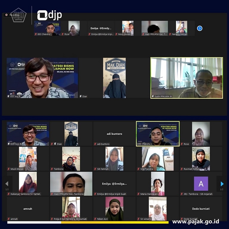 Kantor Pelayanan Pajak (KPP) Pratama Jakarta Tambora menggelar kegiatan Business Development Services (BDS) bekerja sama dengan Jekpreneur Kecamatan Tambora kepada para pelaku UMKM secara daring melalui aplikasi Zoom Cloud Meetings di Jakarta (Selasa, 8/12).