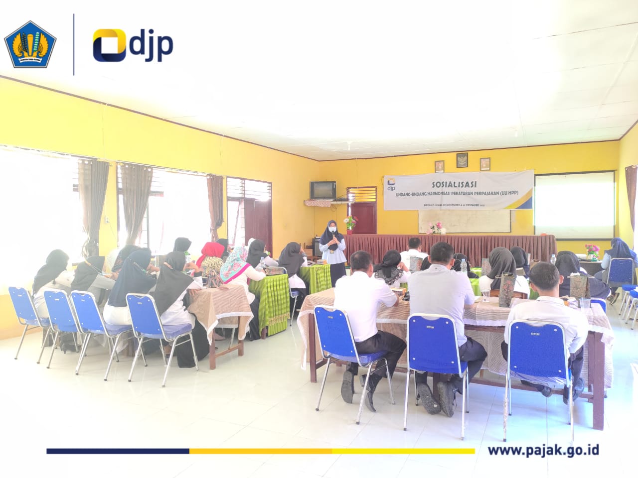 Kantor Pelayanan Pajak (KPP) Pratama Padang Sidempuan dan Kantor Pelayanan, Penyuluhan, dan Konsultasi Perpajakan (KP2KP) Sibuhuan melaksanakan Sosialisasi Undang-Undang Nomor 7 Tahun 2021 tentang Harmonisasi Peraturan Perpajakan (UU HPP) kepada para guru SMA Negeri 1 Sosa di Aula SMA Negeri 1 Sosa, Kabupaten Padang Lawas, Sumatera Utara (Rabu, 1/12). Tim gabungan tersebut terdiri dari Fungsional Penyuluh dan Pelaksana dari KPP Pratama Padang Sidempuan dan KP2KP Sibuhuan.
