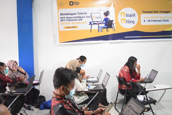 KP2KP Ngabang mengadakan bimbingan teknis implementasi e-Bupot Unifikasi untuk seluruh bendaharawan desa di kecamatan Ngabang (Kamis, 3/2). Sebanyak 19 bendaharawan desa mengikuti kegiatan yang diselenggarakan di Aula KP2KP Ngabang tersebut. Dalam kegiatan tersebut turut hadir Kepala Bidang Perencanaan, Keuangan dan Aset Desa Agustina Titin.