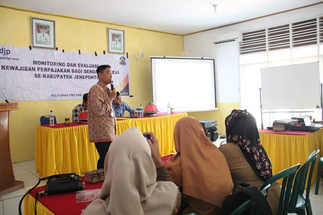 Kantor Pelayanan, Penyuluhan, Dan Konsultasi Perpajakan (KP2KP) Bontosunggu bersama Kantor Pelayanan Pajak (KPP) Pratama Bantaeng melaksanakan Bimbingan Teknis, Monitoring dan Evaluasi Kewajiban Perpajakan bagi Bendahara Desa se-Kabupaten Jeneponto 2019 Tahap III (Selasa, 17/9). Acara ini dilangsungkan di Aula Dinas Pemberdayaan Masyarakat dan Desa Kabupaten Jeneponto.