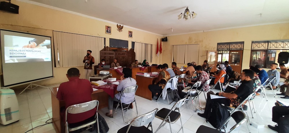 Kantor Pelayanan Pajak (KPP) Pratama Temanggung mengadakan edukasi perpajakan kepada para Bendahara Desa se-Kecamatan Selomerto (Selasa, 8/11). Tema edukasi kali ini adalah kewajiban perpajakan dalam pengelolaan dana desa dan e-Bupot Unifikasi. Acara yang digelar secara tatap muka ini dihadiri oleh 20 peserta bendahara desa bertempat di aula Kecamatan Selomerto, Kabupaten Wonosobo.