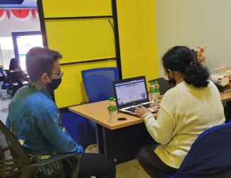 Bendahara Kecamatan Menukung melakukan simulasi perekaman bukti potong menggunakan aplikasi bukti potong elektronik (e-Bupot) di ruang konsultasi Kantor Pelayanan, Penyuluhan, dan Konsultasi Perpajakan (KP2KP) Nanga Pinoh (Selasa, 8/11).