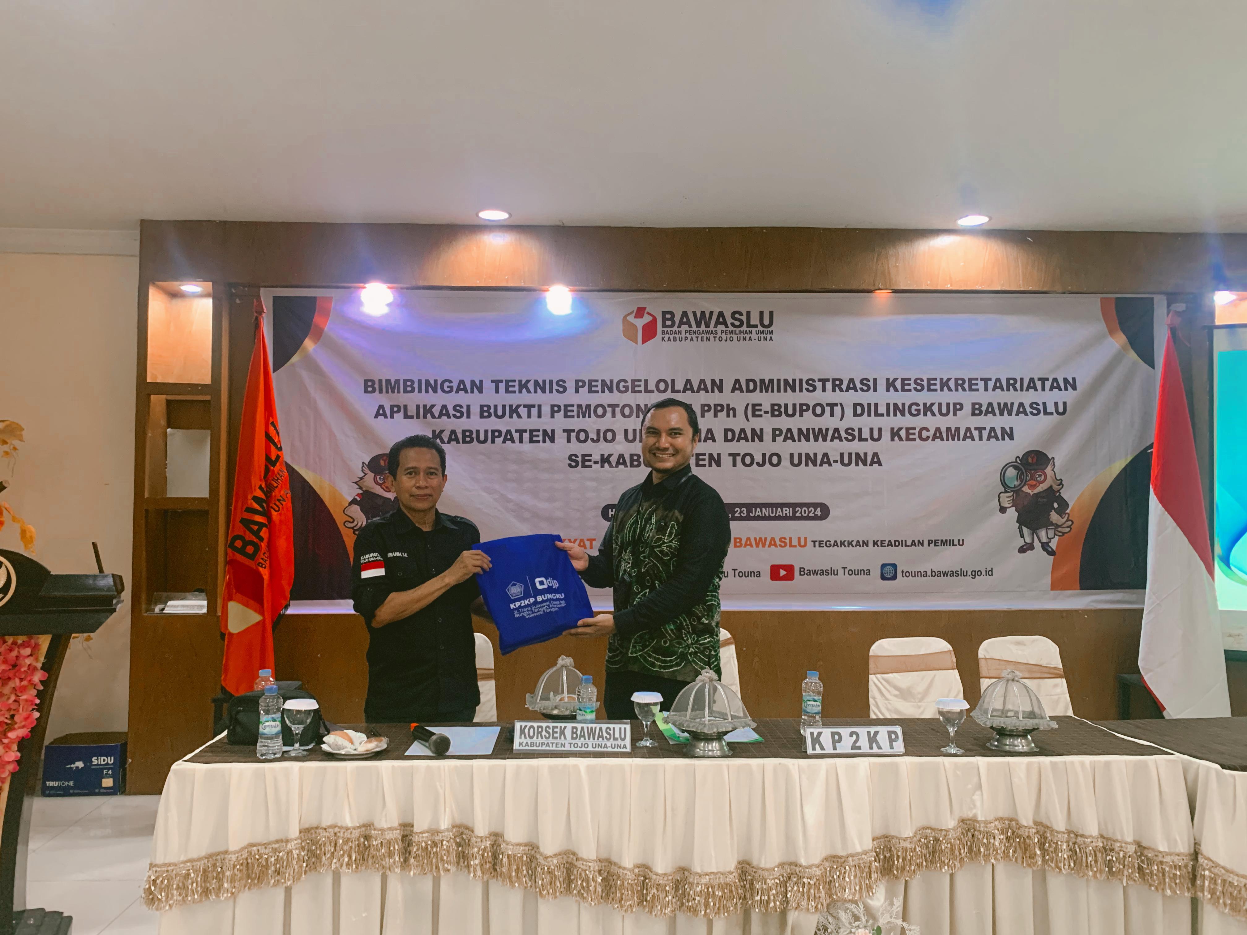 Kantor Pelayanan Penyuluhan dan Konsultasi Perpajakan (KP2KP) Bungku menggelar sosialisasi perpajakan instansi pemerintah di Kabupaten Tojo Una-Una, Sulawesi Tengah (Selasa, 23/1). Acara ini diadakan dalam rapat evaluasi yang diselenggarakan oleh Badan Pengawas Pemilihan Umum (Bawaslu) Kabupaten Tojo Una-Una di Aula Hotel Ananda, Ampana Kota, Sulawesi Tengah.