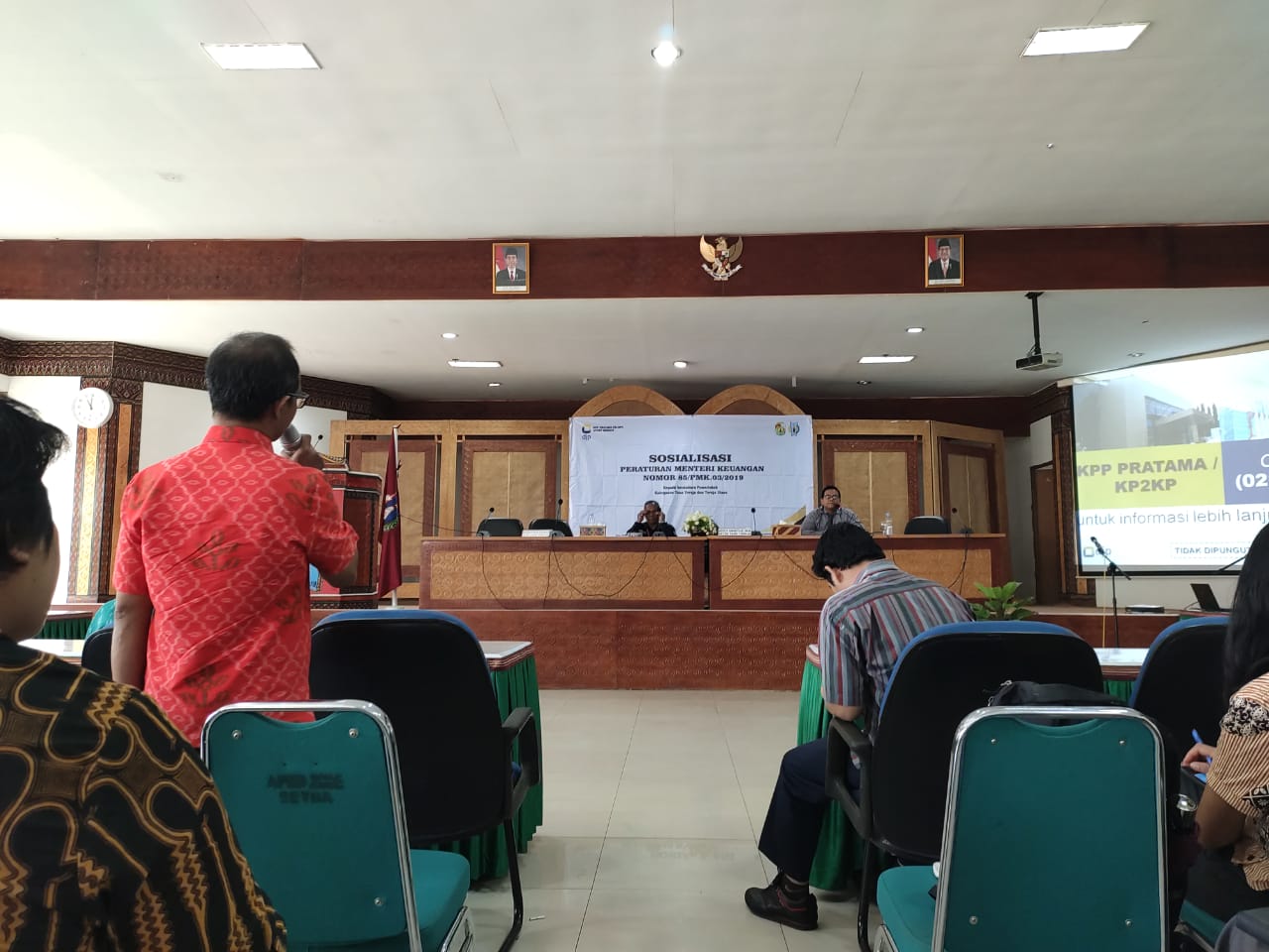 Kantor Pelayanan Penyuluhan dan Konsultasi Perpajakan (KP2KP) Makale bersama Kantor Pelayanan Pajak (KPP) Pratama Palopo melaksanakan kegiatan sosialisasi PMK-85/PMK.03/2019 tentang Mekanisme Pengawasan Terhadap Pemotongan/Pemungutan dan Penyetoran Pajak Atas Belanja yang Bersumber dari Anggaran Pendapatan dan Belanja Daerah (Kamis, 26/9). Bertempat di aula Kantor Bupati Tana Toraja, kegiatan ini diikuti oleh Bendahara Pemerintah Kabupaten Tana Toraja sebagai peserta sosialisasi.