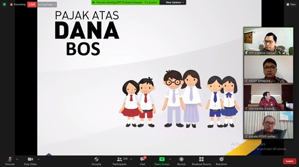 KP2KP Amlapura bersama KPP Pratama Gianyar melakukan sosialisasi daring terkait Implementasi PMK-231/PMK.03/2019 Tentang Tata Cara Pendaftaran dan Penghapusan Nomor Pokok Wajib Pajak, Pengukuhan dan Pencabutan Pengukuhan Pengusaha Kena Pajak, Serta Pemotongan dan/atau Pemungutan, Penyetoran, dan Pelaporan Pajak Bagi Instansi Pemerintah yang mulai berlaku 1 April 2020 kepada bendahara sekolah se-Kabupaten Karangasem, Karangasem (Selasa, 9/2).