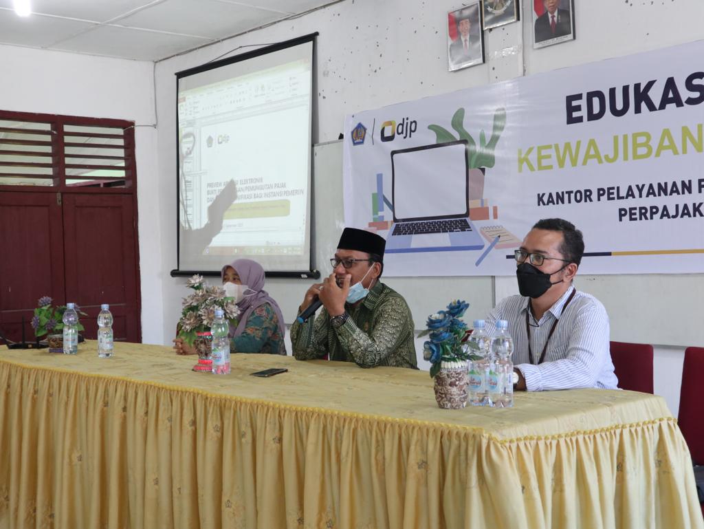 Kantor Pelayanan, Penyuluhan, dan Konsultasi Perpajakan (KP2KP) Tanjung Balai memenuhi undangan dari Kantor Cabang Dinas Pendidikan Tanjungbalai untuk menjadi narasumber dalam kegiatan Edukasi Pajak Kewajiban Bendahara (Kamis, 23/9). Kegiatan ini diselenggarakan di ruang aula SMA Negeri 1 Tanjungbalai, Kota Tanjungbalai.