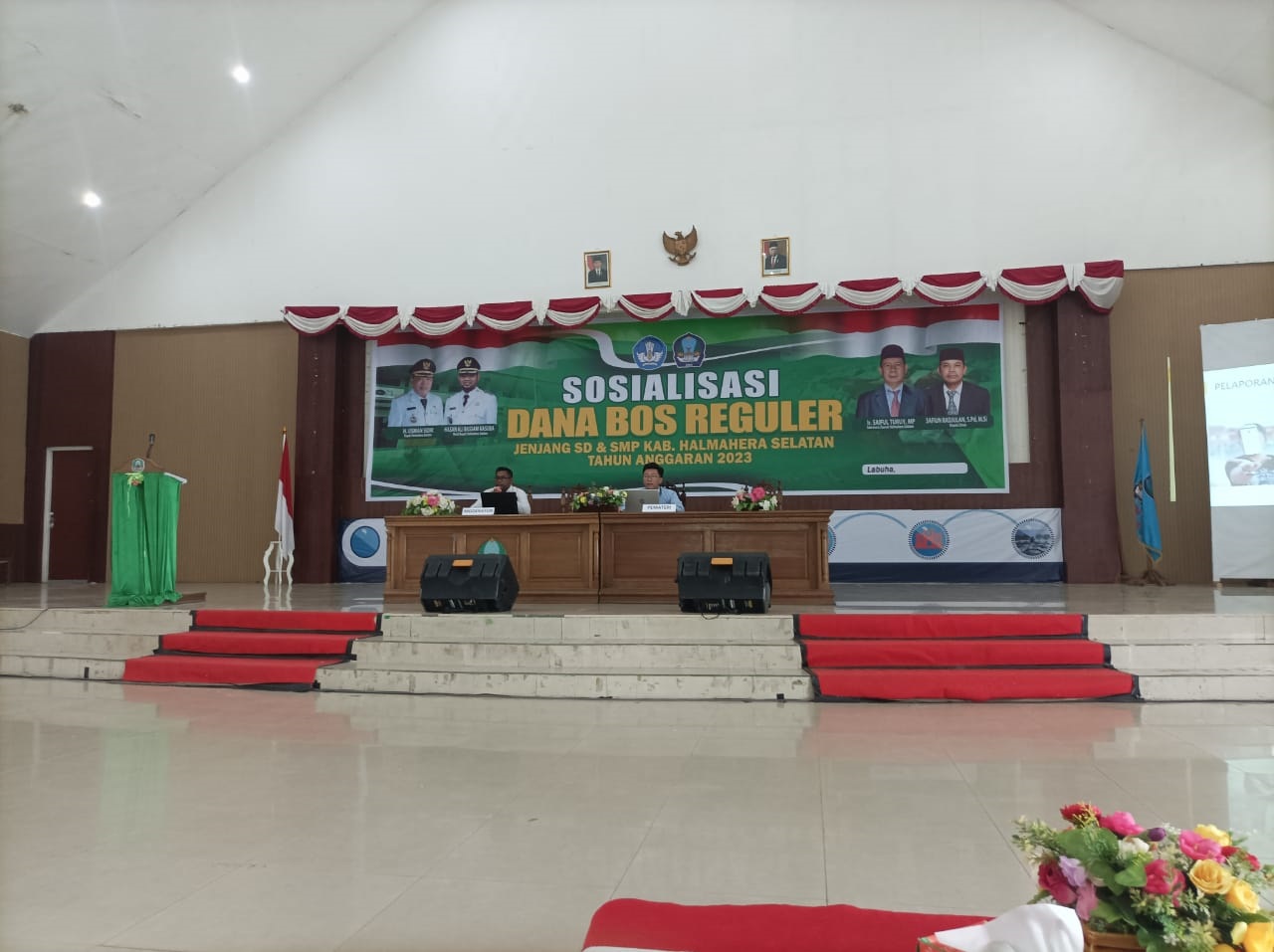 Kantor Pelayanan, Penyuluhan, dan Konsultasi Perpajakan (KP2KP) Labuha bersama Dinas Pendidikan dan Kebudayaan Kabupaten Halmahera Selatan mengadakan kegiatan Sosialisasi Dana Bantuan Operasional Sekolah (BOS) Reguler Jenjang Sekolah Dasar (SD) dan Sekolah Menengah Pertama (SMP) Kabupaten Halmahera Selatan Tahun Anggaran 2023 (Rabu, 29/3). Acara ini dilangsungkan secara luring bertempat di ruang Aula Kantor Bupati Halmahera Selatan, Kabupaten Halmahera Selatan.