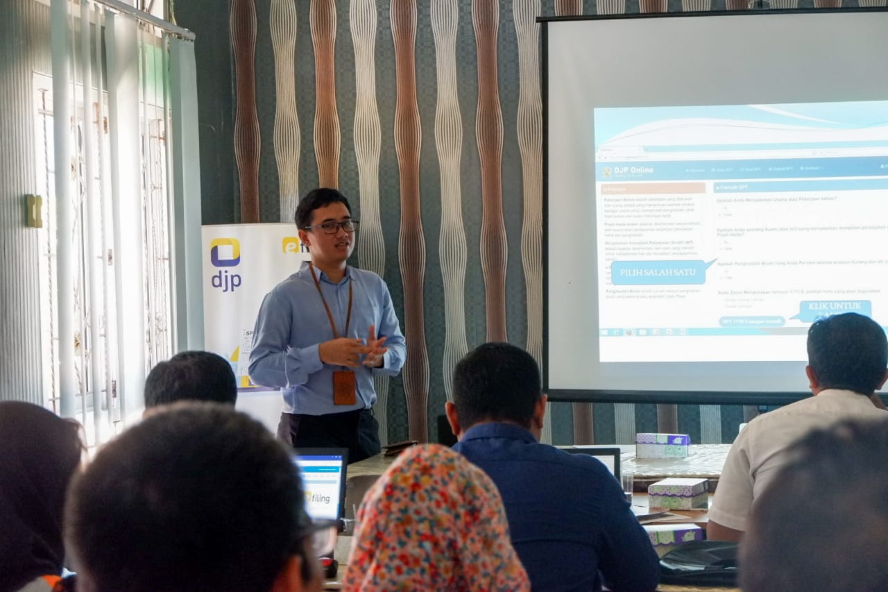 Kantor Pelayanan Penyuluhan dan Konsultasi Perpajakan (KP2KP) Tilamuta menyelenggarakan Bimbingan Teknis tata cara pembuatan bukti potong 1721-A2 dan Pelaporan SPT Tahunan 2019 secara online melalui e-Filling yang diselenggarakan di aula KP2KP Tilamuta (Rabu, 22/1).