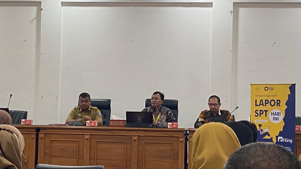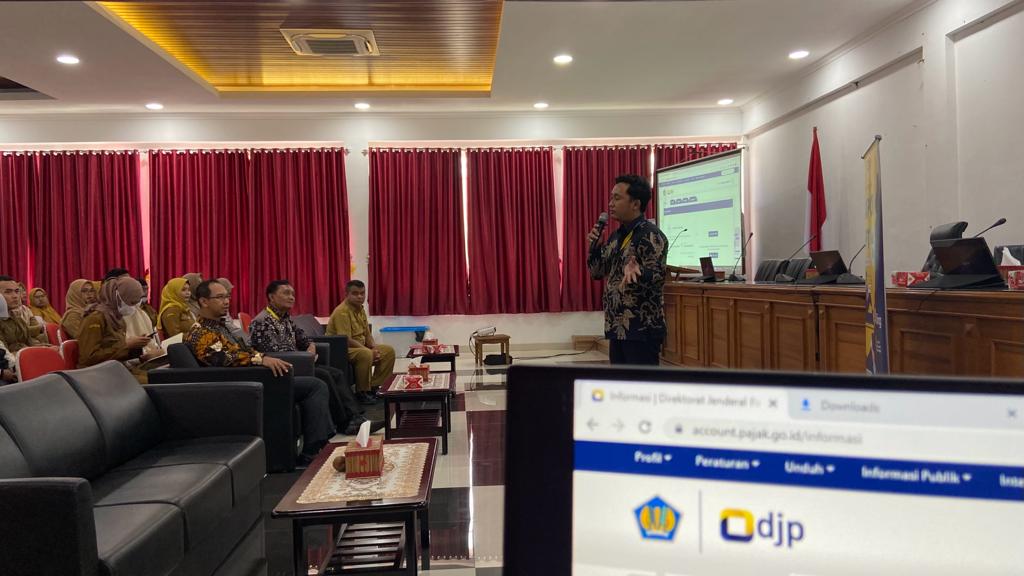 Tim Penyuluh Kantor Pelayanan Pajak (KPP) Pratama Ciamis mengadakan Sosialisasi Tata Cara Penyampaian SPT Tahunan PPh Orang Pribadi kepada Bendahara Satuan Kerja Perangkat Daerah (SKPD) Kabupaten Pangandaran di Ruang Aula Pusat Pemerintahan Kabupaten Pangandaran (Selasa, 21/3).