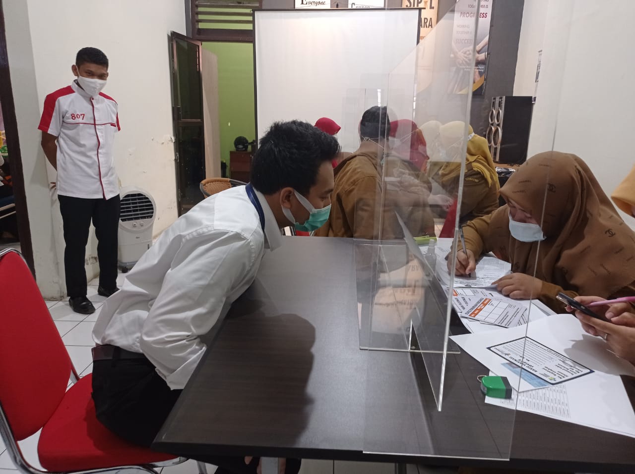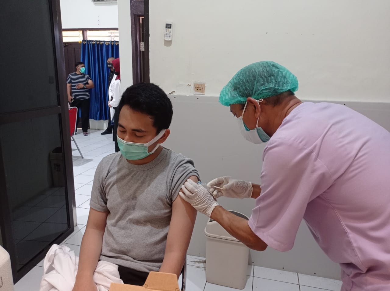 Sebelum disuntik vaksin, petugas medis melakukan pemeriksaan kesehatan kepada seluruh peserta. Setelah penyuntikan, seluruh penerima vaksin harus menjalani masa observasi selama 30 menit untuk mengamati efek samping vaksin. Dari 18 penerima vaksin, seluruh peserta dinyatakan aman.
