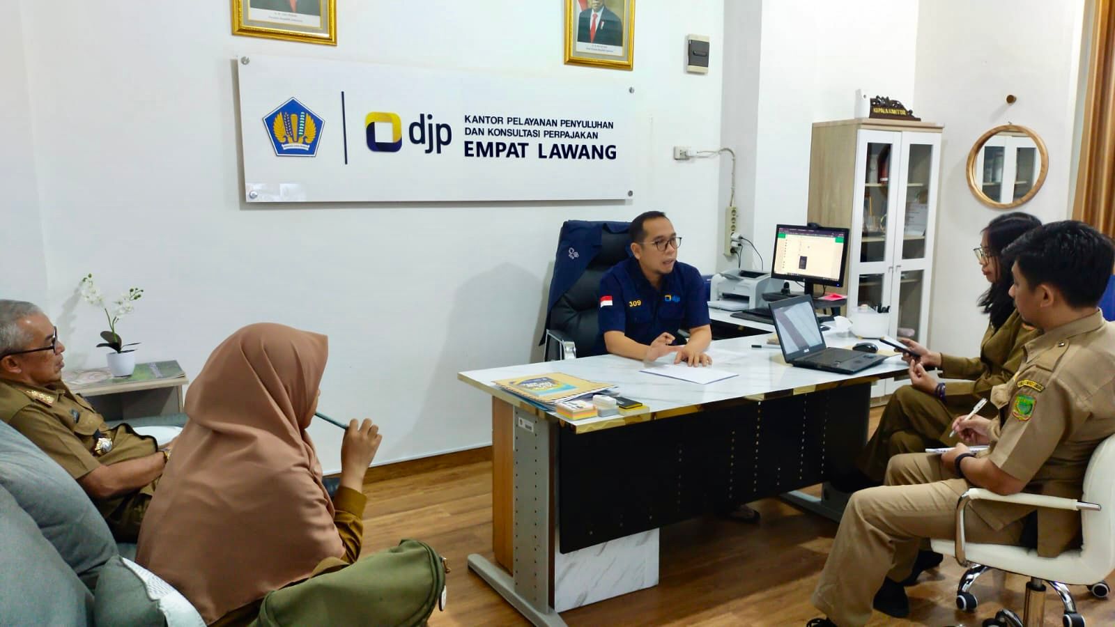 Kantor Pelayanan Penyuluhan dan Konsultasi Perpajakan (KP2KP) Empat Lawang melaksanakan Bimbingan Teknis (Bimtek) Pemotongan Pajak Penghasilan (PPh) Pasal 21 khusus Dokter non pegawai RSUD bersama pegawai Inspektorat Kabupaten Empat Lawang di ruang kepala kantor KP2KP Empat Lawang, Empat Lawang, Sumatera Selatan (Selasa, 17/10).