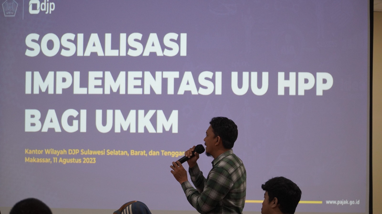 Kantor Wilayah Direktorat Jenderal Pajak Sulawesi Selatan, Barat, dan Tenggara (Kanwil DJP Sulselbartra) mengadakan kegiatan Sosialisasi Implementasi Undang-Undang Harmonisasi Peraturan Perpajakan (UU HPP) Bagi Usaha Mikro, Kecil, dan Menengah (UMKM) di Aula lantai 6 Gedung Keuangan Negara II Makassar, Jalan Urip Sumoharjo KM. 4 Makassar (Jumat, 11/8).