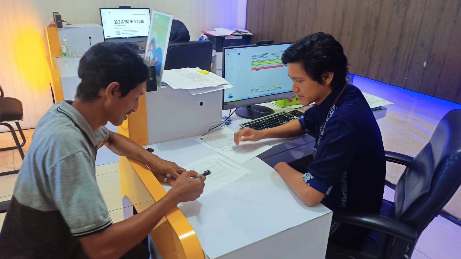 Petugas KP2KP Tanjung Selor terlebih dahulu melakukan pengecekan data pembayaran pajak, serta riwayat kepatuhan pelaporan Surat Pemberitahuan (SPT) Tahunan milik wajib pajak. Wajib pajak kemudian dibantu oleh petugas untuk menghitung PPh Final 0,5% dari omzet penjualan setiap bulannya.